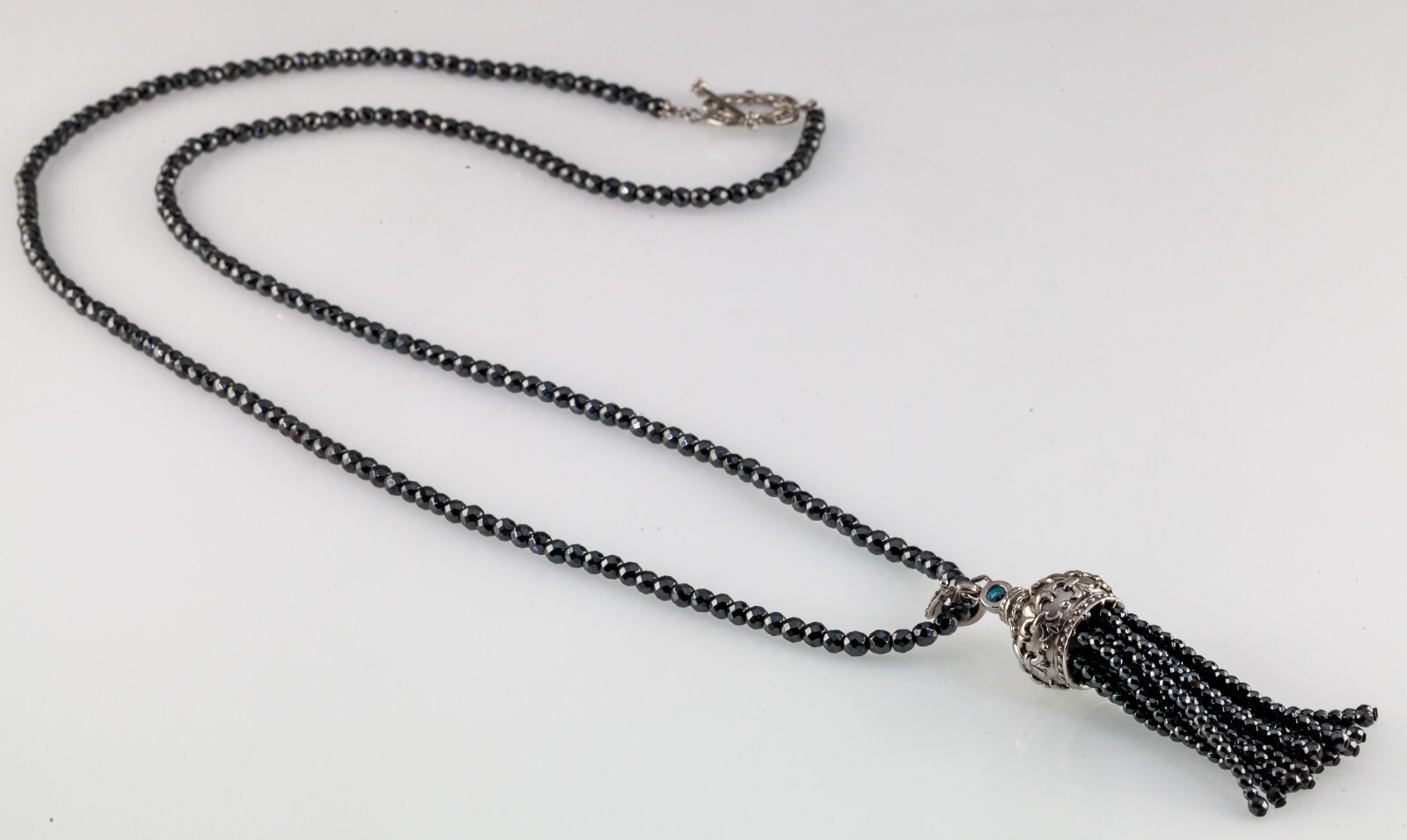 Features Briolette Marcasite Bead Necklace with Sterling Silver, CZ, and Marcasite Tassle Enhancer