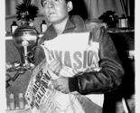 Gene Barry’s tormented Dr. Forrester clutches at newspapers headlining the Martian invasion in this rare original PR shot from George Pal’s 1953 alien invasion classic. He inscribed with black ink pen.