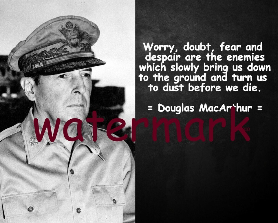 GENERAL DOUGLAS MACARTHUR FAMOUS QUOTE 8x10 PHOTO PRINT WORRY DOUBT FEAR ...