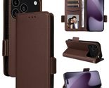 - Generic case for iPhone 15 (Color: Brown) Leather Wallet Side Clip Magnetic Flip