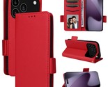 - Generic case for iPhone 16 Pro Max (Color: Red) Leather Wallet Side Clip Magneti