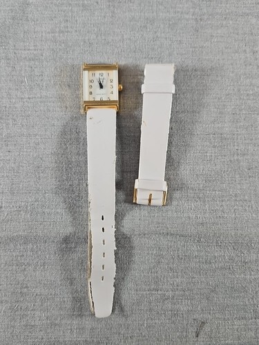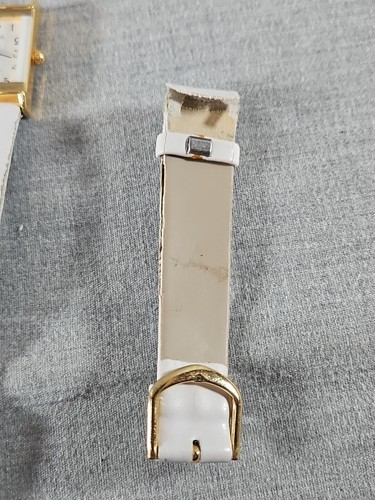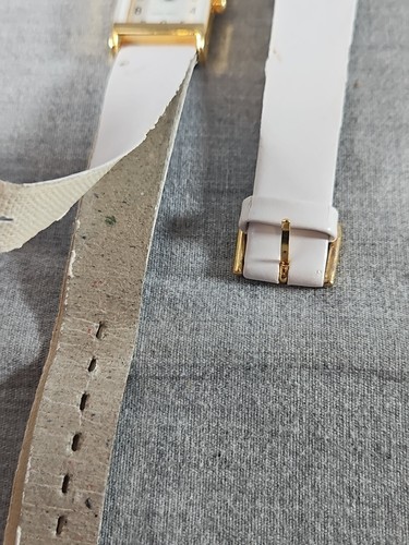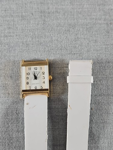 - Geneva Quartz Ladies Watch, Rectangular Face/White Band Leather, Needs Battery