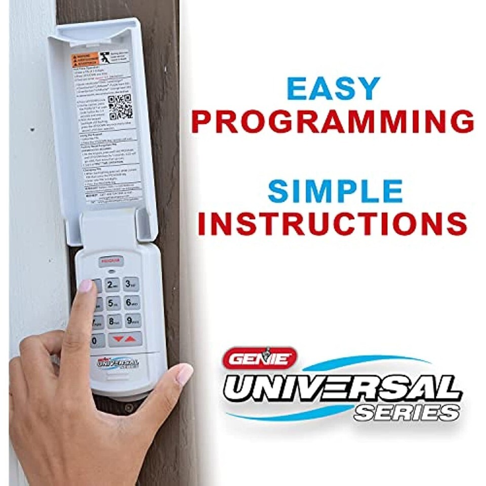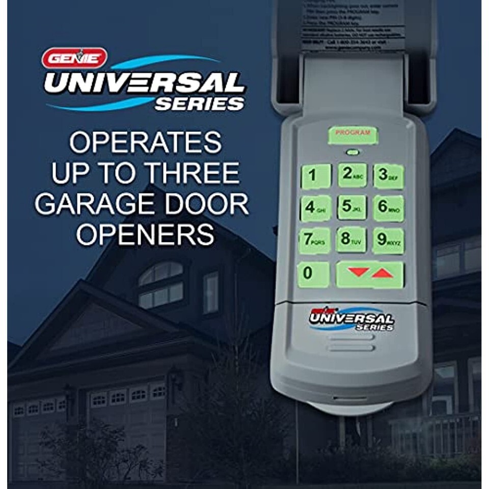 The Genie Universal Garage Door Opener Keypad is a keyless entry wireless keypad system for easy access to your garage without the need for a garage door opener remote or manual key. The Genie Universal Keypad is designed to work with nearly all manufacturers of garage door openers in the USA; to include Genie, Ryobi, Chamberlain, LiftMaster, Craftsman, Marantec, Linear, Stanley, and many more. This Genie universal wireless garage door opener keypad comes with the security of Genie's technology built in. Initial setup is easy and takes only 2 minutes to complete. The universal wireless garage opener keypad features a flip-up cover to protect the wireless keypad from the elements and lets you control up to 3 garage door openers. The universal garage door opener keypad features a back light, which means you can easily see to enter your code even at night. A tone sounds with each button press to let you know your entry has been received. The included x2 AAA batteries are easy to change. If your garage door opener did not come with a keypad this is a quick and easy upgrade that can be added to nearly any garage door opener. The Genie universal garage door opener wireless keypad.