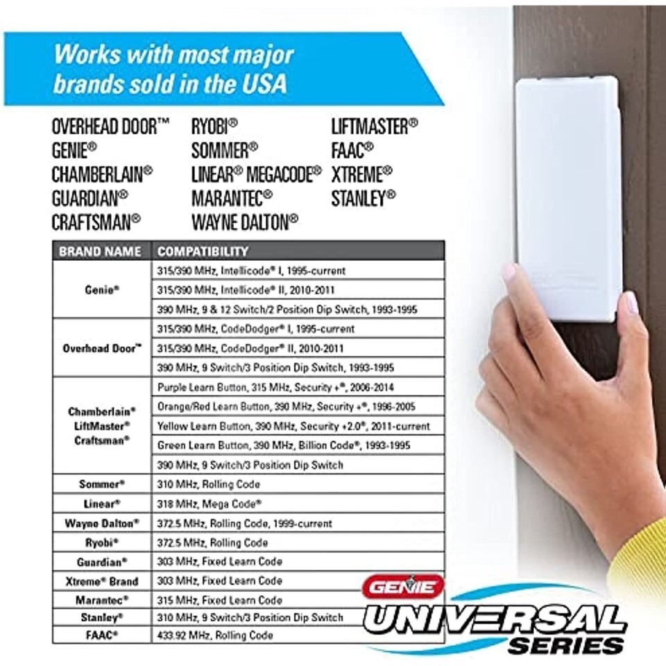 UNIVERSAL WIRELESS KEYPAD: The Genie universal garage door opener wirless keypad compatible with all major garage door opener brands in the market today
