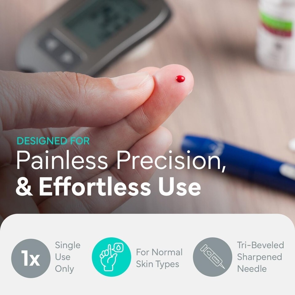 Gentle for Normal Skin: 30 gauge lancets are perfect for users with normal skin types, ensuring a comfortable and effective blood draw.