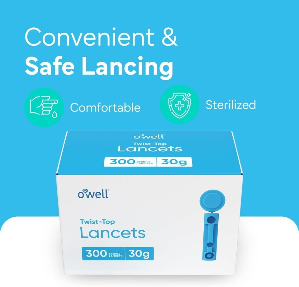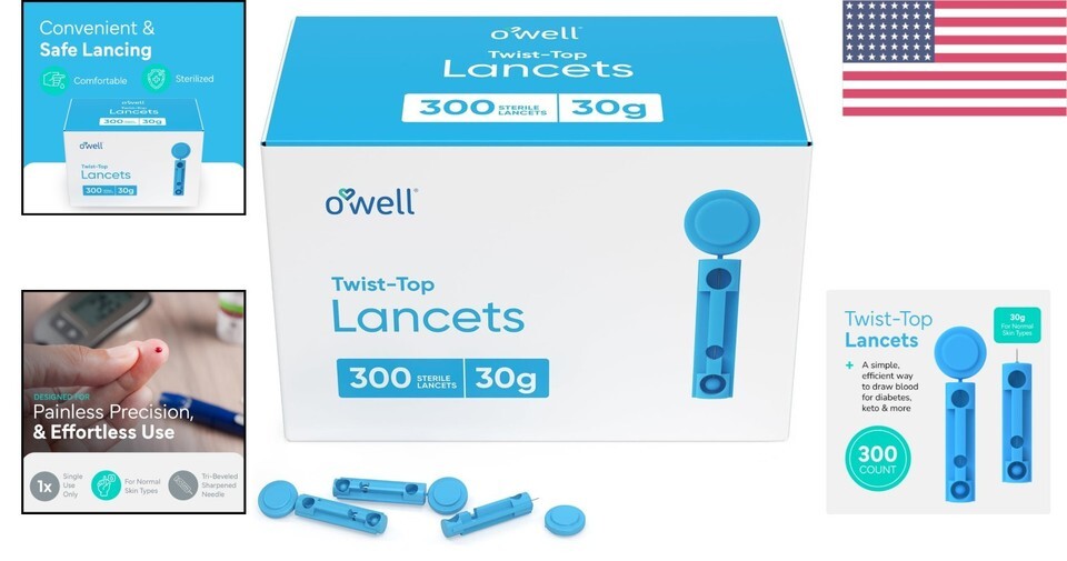 - Gentle 30 Gauge Twist Top Lancets - 300 Count for Comfortable Blood Testing