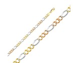 - Genuine 14k Tri-tone Gold 5.5mm Concave 3+1 Figaro Chain 7.5" Ladies Bracelet