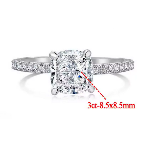 - Genuine 925 Sterling Silver 3CT Cushion Cut Moissanite Eternity Ring (Size 5-9)
