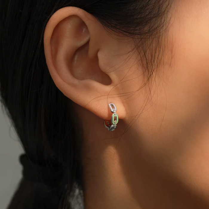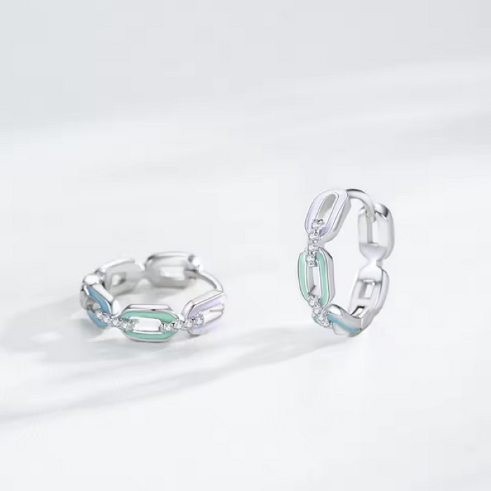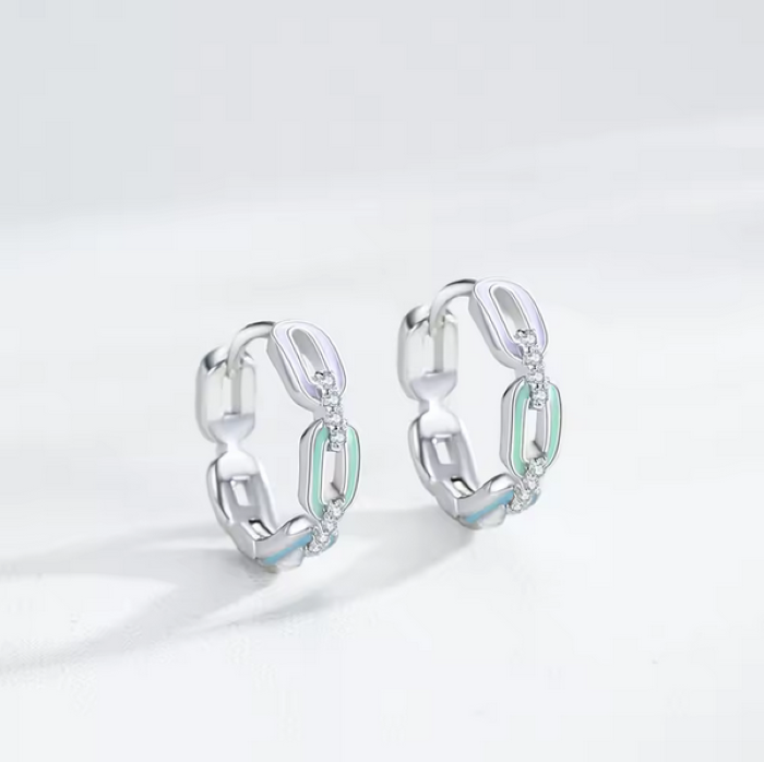 - Genuine 925 Sterling Silver Colorful Enamel Dazzling Zirconia Chain Hoop Earring