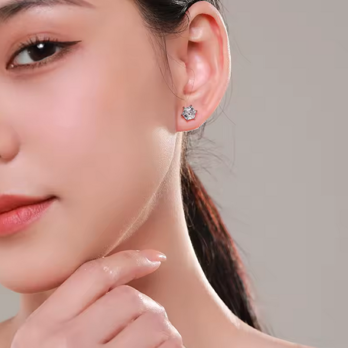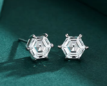 - Genuine 925 Sterling Silver Dazzling Zirconia Hexagon Stud Earrings