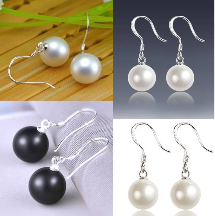 - Genuine 925 Sterling Silver Hook Pierced Faux Pearl Round Stud Earrings