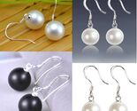 Genuine 925 Sterling Silver Hook Pierced Faux Pearl Round Stud Earrings