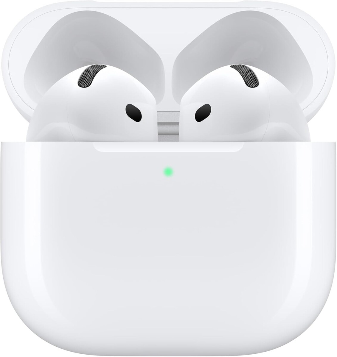Apple AirPods 4 Wireless Earbuds, Bluetooth Headphones, Personalized Spatial Audio, Sweat and Water Resistant, USB-C Charging Case, H2 Chip, Up to 30 Hours of Battery Life, Effortless Setup for iPhone