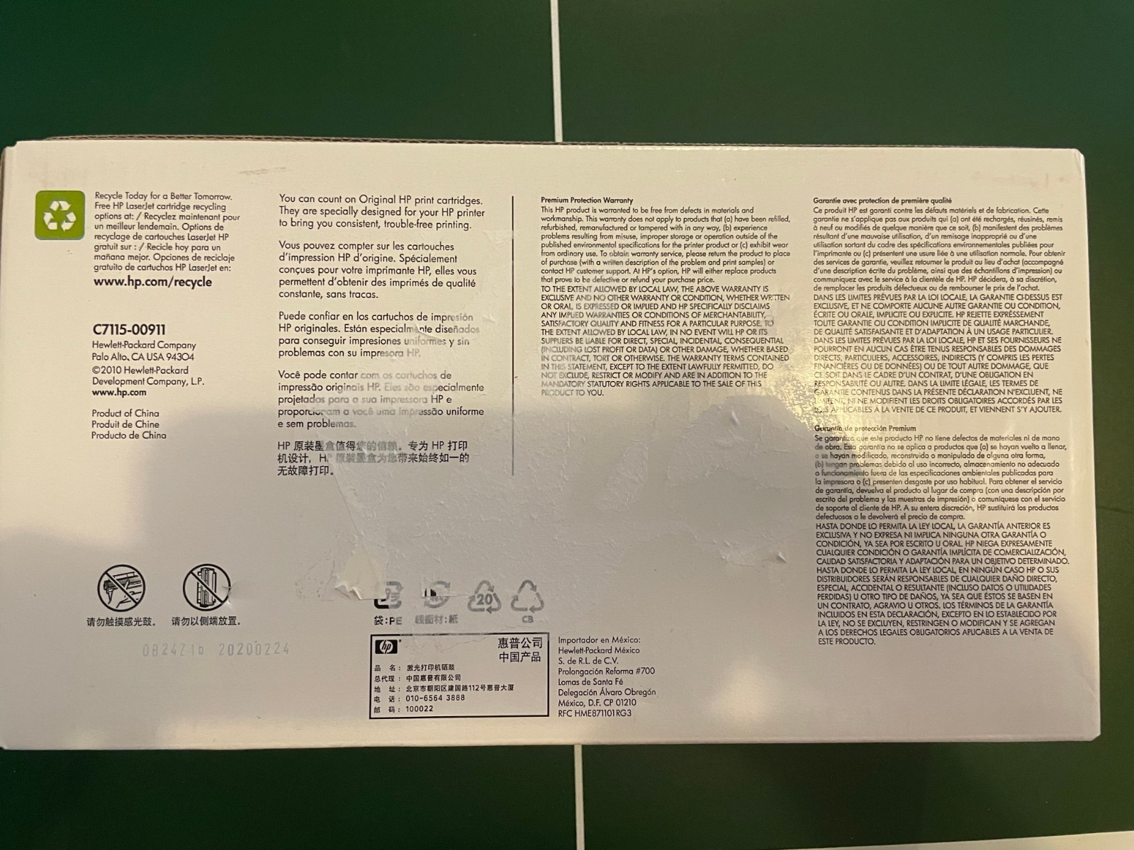 - Genuine HP LaserJet 15X Black Toner High Volume Print Cartridge C7115X Sealed