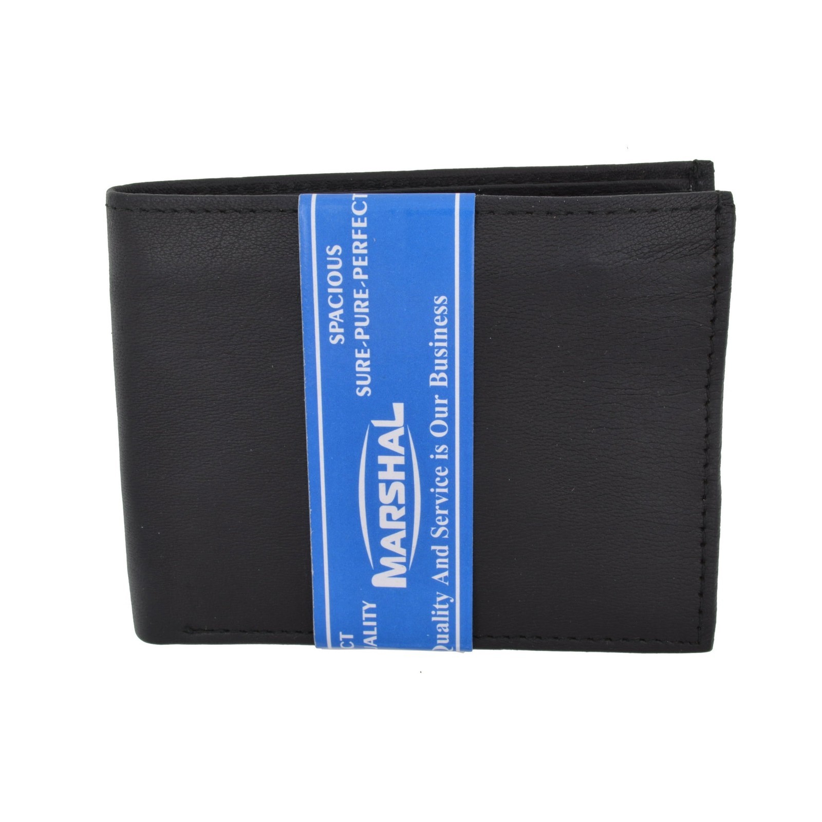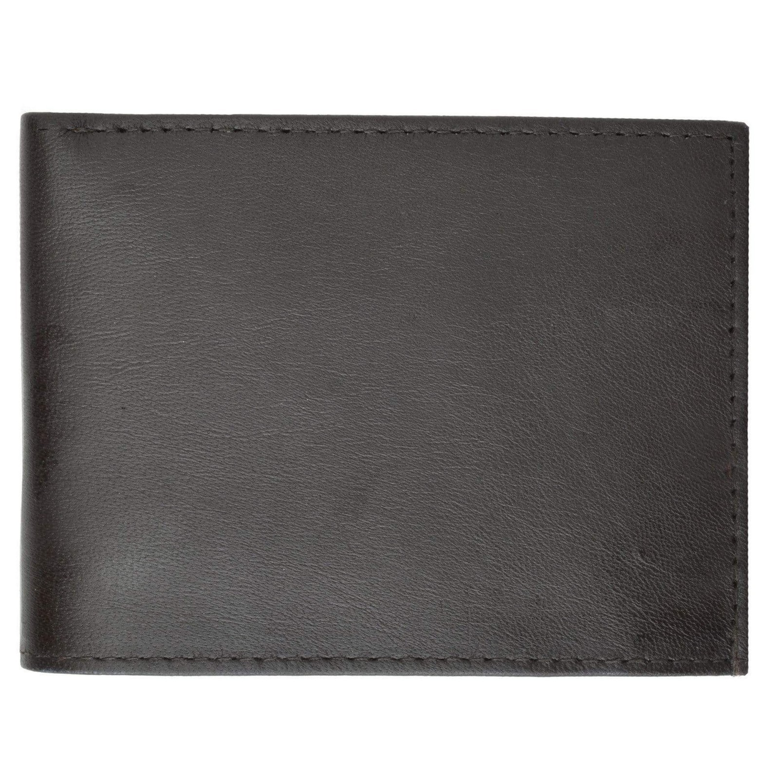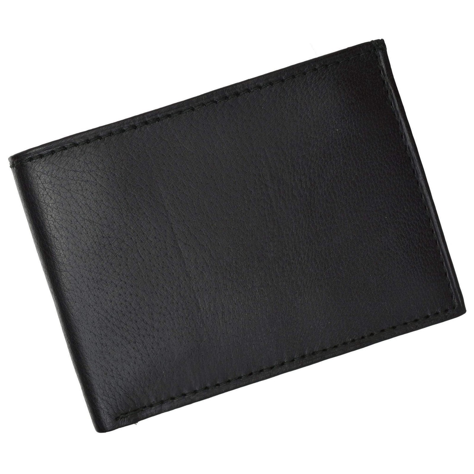 - Genuine Leather Bi-Fold Wallet ID Window Black Credit Card Slots Zippered Pocket