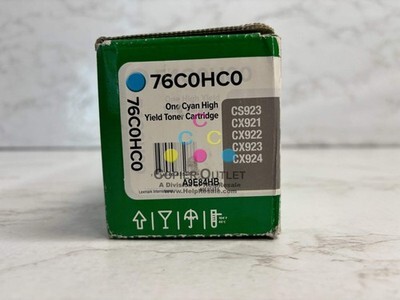 Genuine Lexmark 76C0HC0 Cyan High Yield Toner NEW Same Day Shipping FOR CX922de,CX921de,CX923dxe,CX923dte,CX924dxeCX924dte,CS923de Listed By: Renee (Sales Team) ?We should care as much about well-doing as well-being. I want to live in a world that values purpose as much as pleasure, contribution as much as contentment, honesty as much as excitement, and justice as much as joy.?~Adam Grant (A positive moment brought to you by Help Resale) Copier Outlet (A Division of Help Resale) Copier Outlet was established in 1993. We buy and sell both domestically and internationally and have wide assortment of copiers, consumable and accessories of all popular brands. All of our copiers are in house and available for your inspection. They all have been tested and rated for functions, cosmetics and overall appearance. Our consumable and accessories selections include toners, imaging units, developers and copier parts such as fax board, fixing unit, fuser unit, roller, cleaning brush, drum blades and etc. For more detailed information on our copiers, consumables and accessories, please feel free to give us a call. We are more than happy to assist you with the pricing and guide you to find the copiers, consumable and accessories you wish to buy. Best Regards, Copier Outlet Sales Team Monday - Friday: 9:00 am to 5:00 pm (PST) Copier Outlet Promo Video - YouTube Video will open in a new windowUsing the App? Paste link into a browser window: [isdntekvideo] All product and company names are trademarks TM or registered trademarks of their respective holders. Use of them does not imply any affiliation with or endorsement by them.