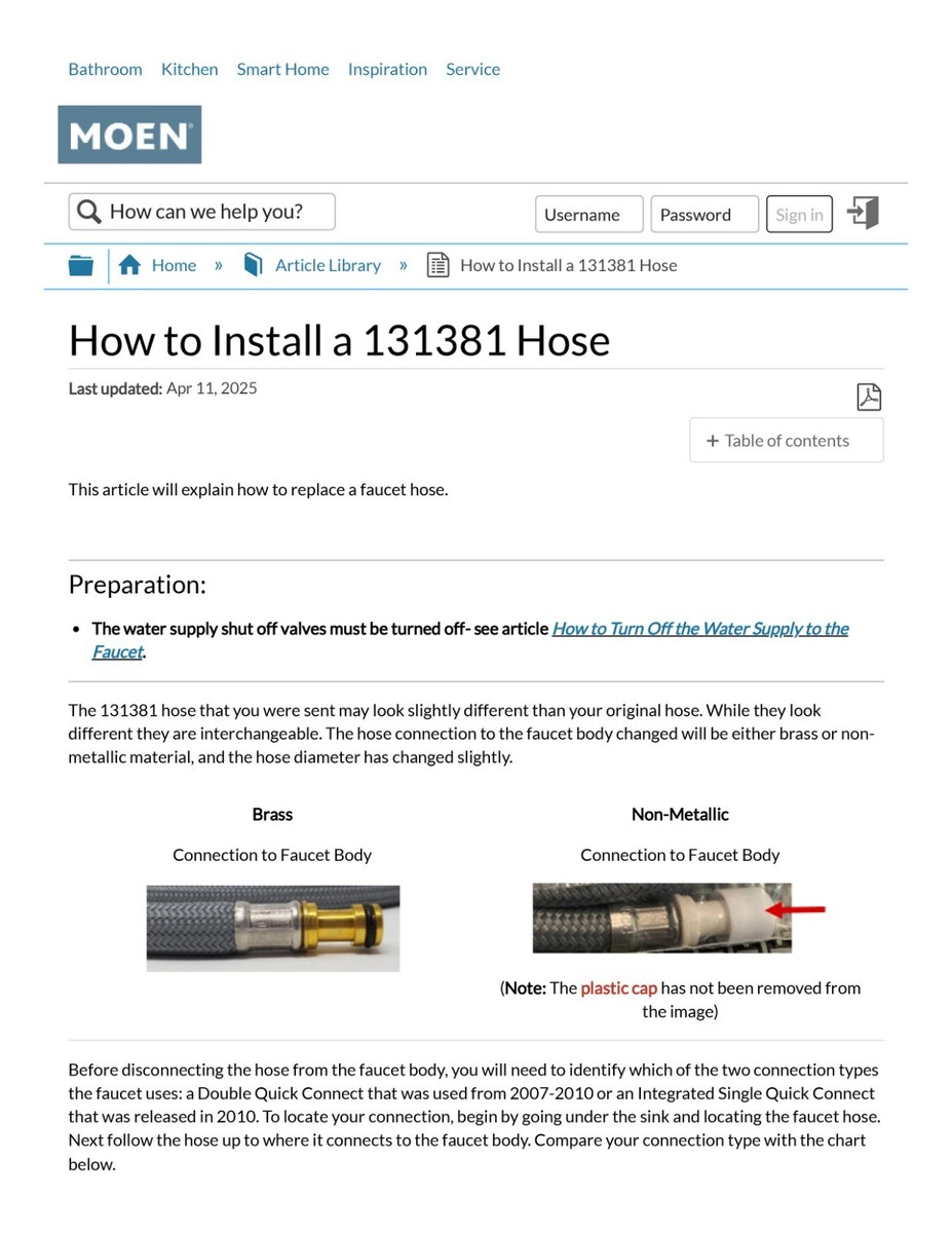 - GENUINE MOEN REPLACEMENT 1- HANDLE PULL DOWN QUICK CONNECT HOSE 67 INCH 131381