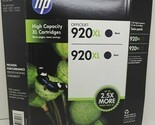 The Genuine New HP 920XL (CN701BN) High Yield Twin Pack Ink Sealed Cartridges are specifically designed for HP printers, ensuring high-quality printing results. These black cartridges have a warranty end date of 6/14, guaranteeing their freshness and reliability. The twin pack design allows for convenient and cost-effective printing, making it an ideal choice for those looking to replenish their ink supply. Trust in the HP brand for exceptional printing performance and reliability.