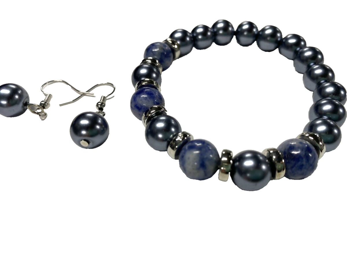 - Genuine Sodalite Stretch Bracelet and Earrings Set