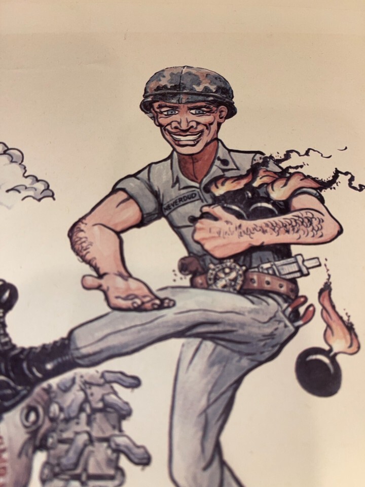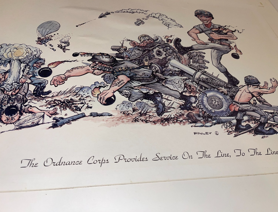 - George Finley Military COLOR Cartoon Print, U.S. ARMY ORDANANCE CORP 25"X19"