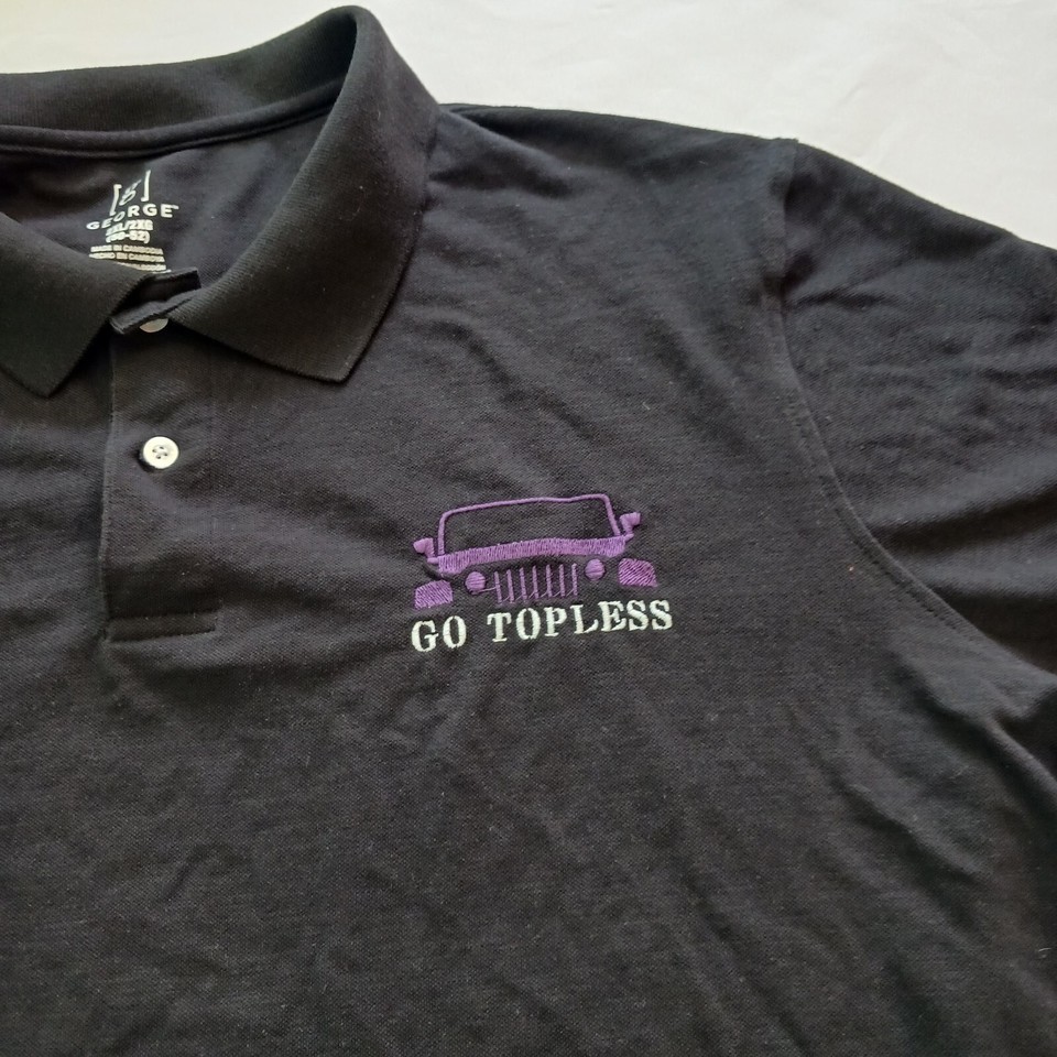Elevate your casual look with this classic George Go Topless Polo Shirt, perfect for any outdoor activity. The black solid pattern, collared neckline, and pullover closure give it a timeless and stylish appearance. Made with a blend of polyester, spandex, and cotton, this knit fabric shirt is comfortable and stretchy, making it perfect for walking, golfing, or driving.