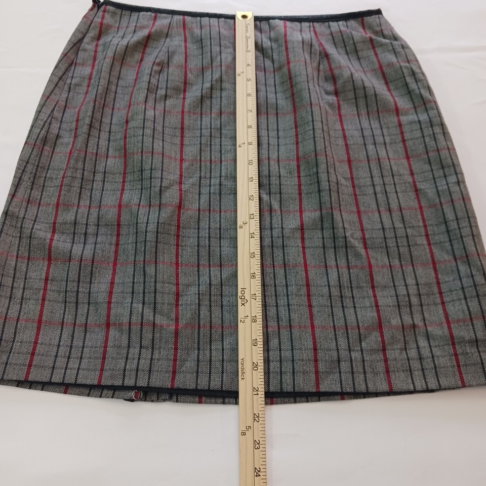 This pull-on skirt has a side zipper for easy wear and a measured waist of 34 inches. It is a size 14 and has a length of 21.5 inches. The skirt is suitable for regular-sized women and comes in a gray color that is perfect for any occasion. Get ready to turn heads with this stylish skirt from George!