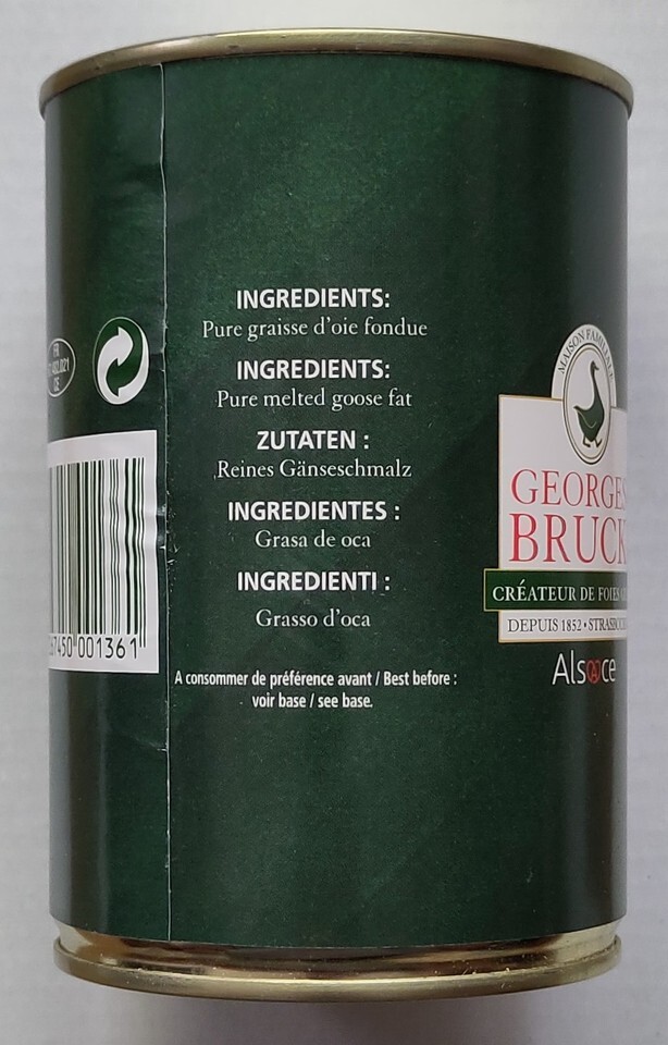 GEORGES BRUCK - FOIE GRAS de STRASBOURG, ALSACE - Goose Fat - 370gr tin