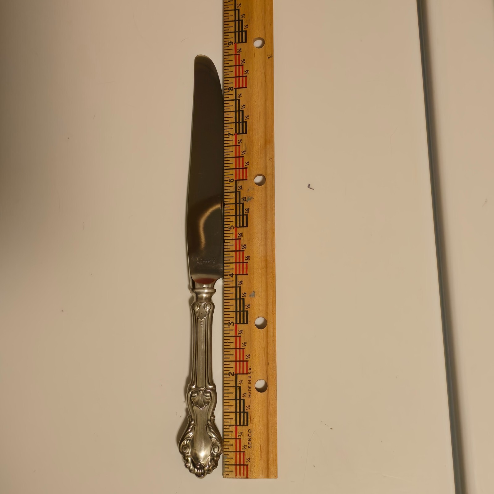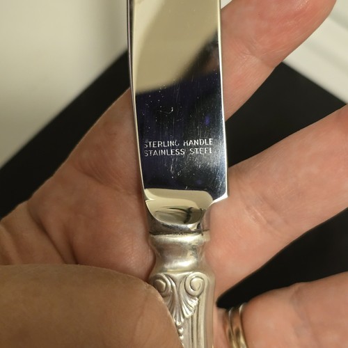Vintage Georgian Shell By Frank Whiting / Concord Sterling Silver Regular Butter Knife - approximate 8 3/4" inch / Weight 2.2 oz / each. Marked Sterling Silver Handle / Stainless Steel blade... but the makers' marks or names may vary between knives shown. Please See Photos!