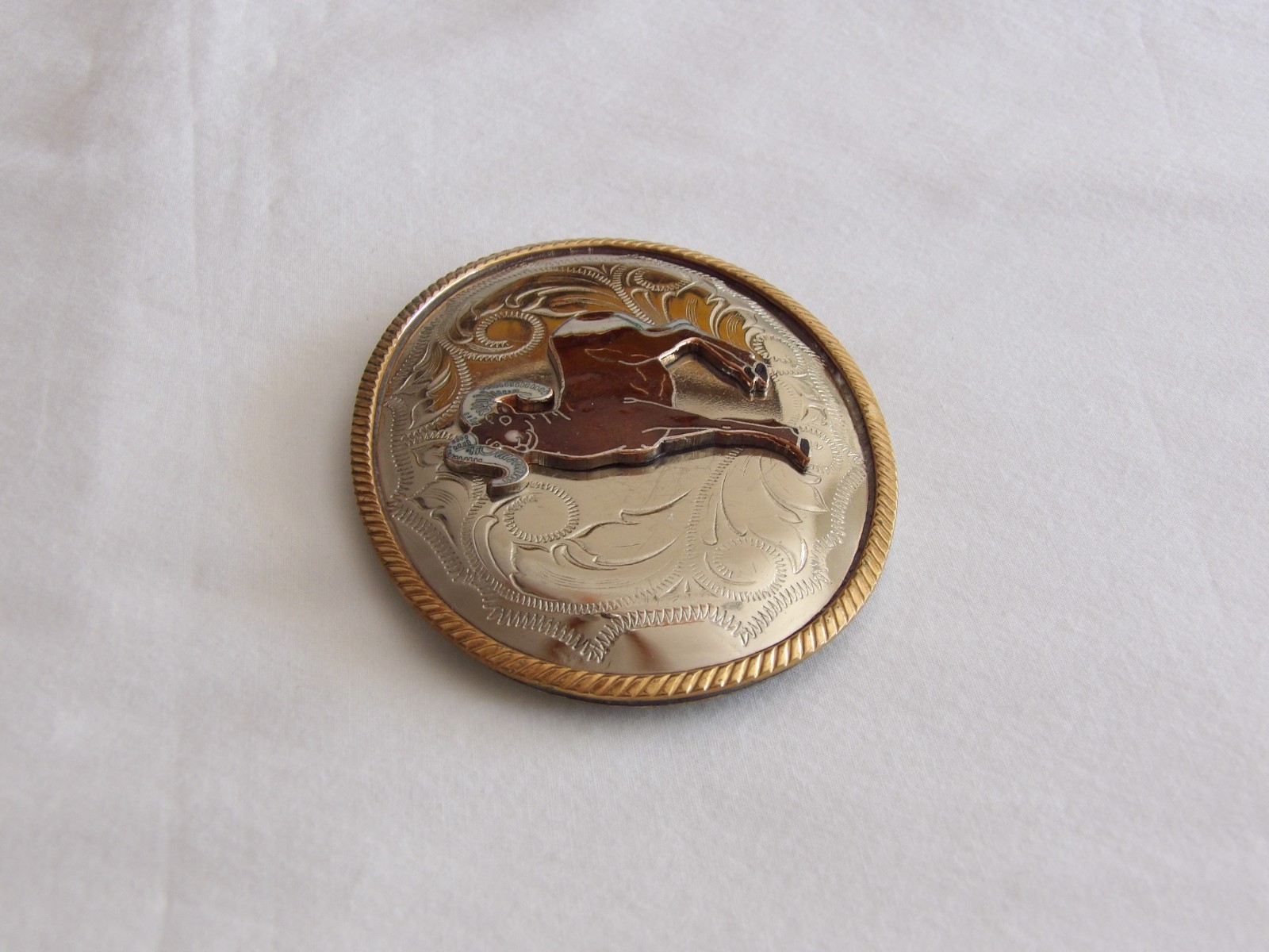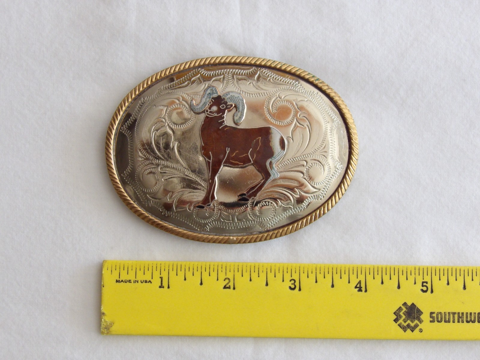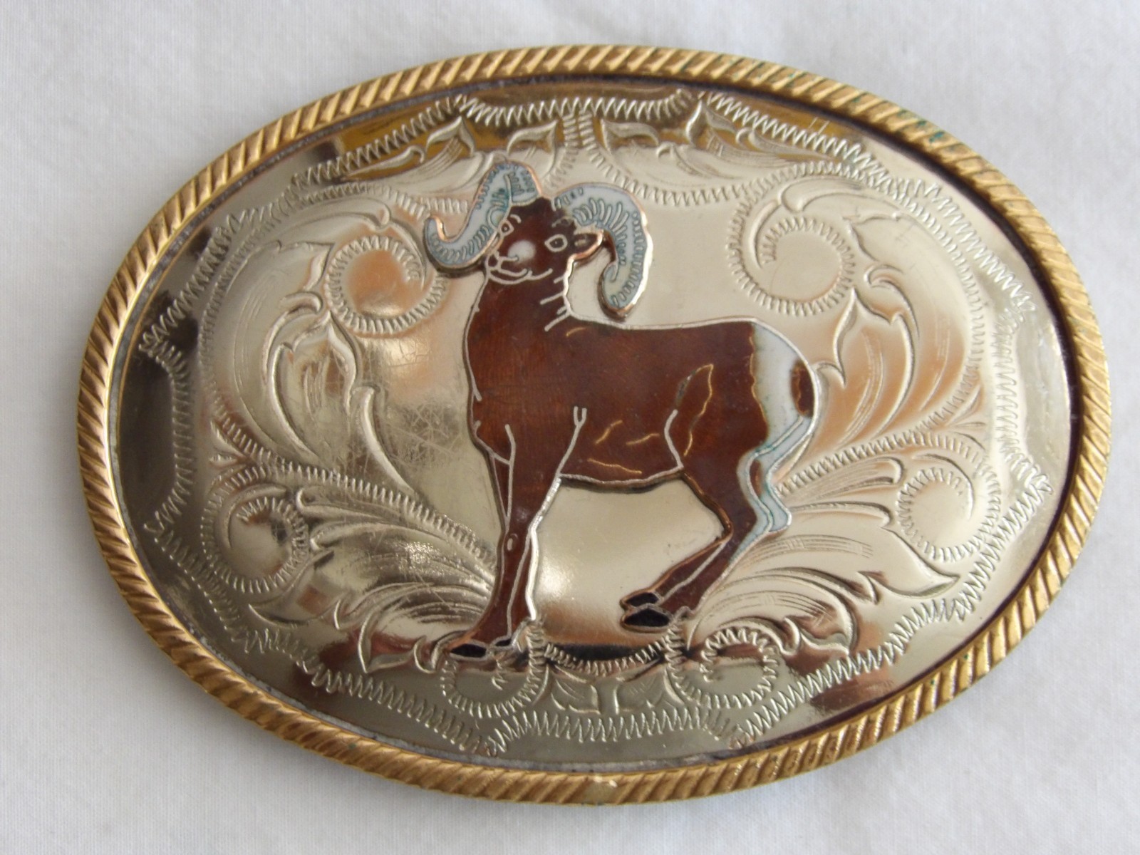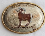 German Silver Belt Buckle Ram Sheep Cowboy Western Style 3.75"x2.5"
