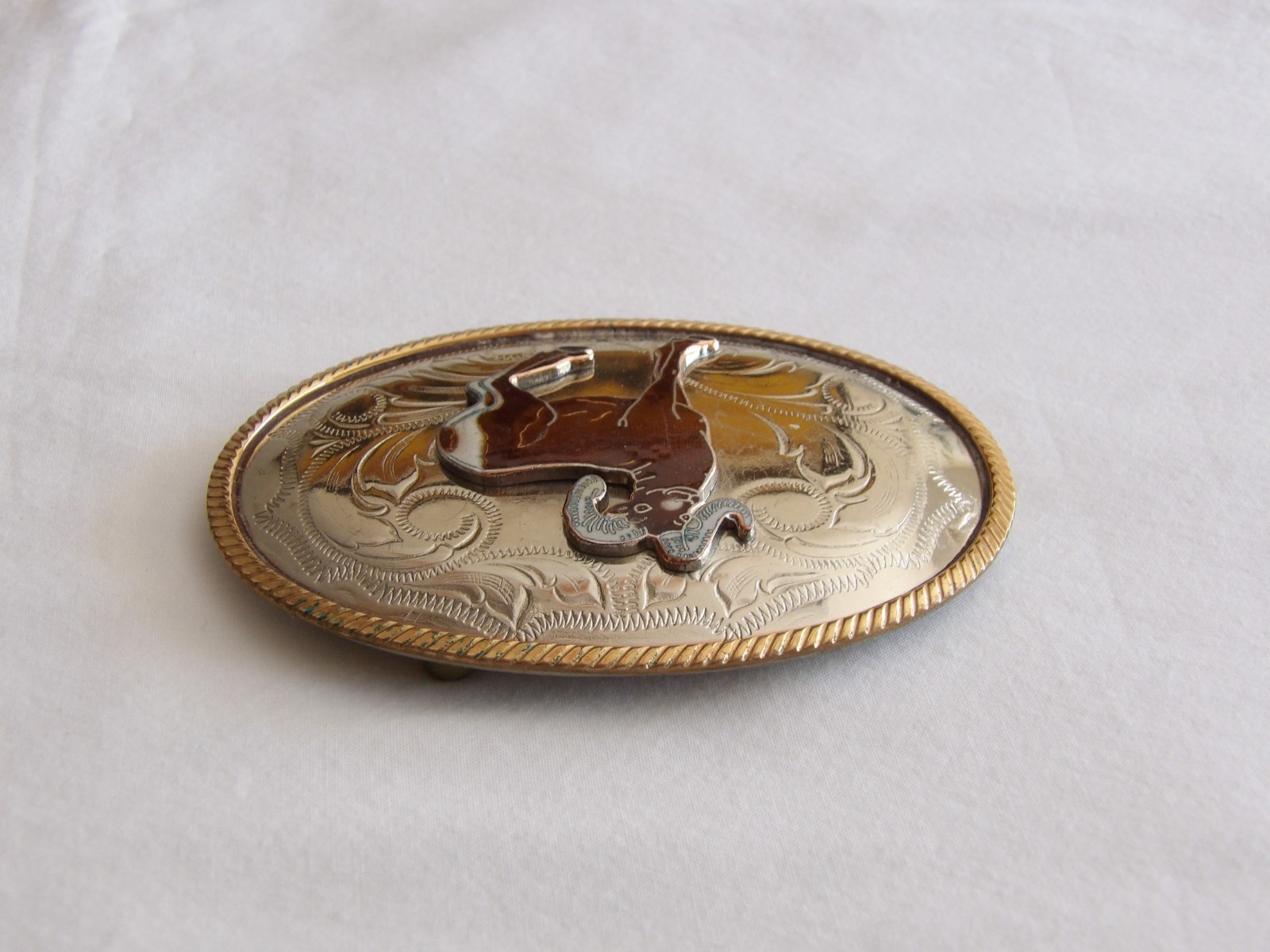 - German Silver Belt Buckle Ram Sheep Cowboy Western Style 3.75"x2.5"
