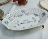 German Tray, "Dem Jubel Paare", The jubilant couple tray, white with silver print, very good condition, some light surface scratches commensurate with age, 2" tall x 11" x 7" [96b-bsktrack5]