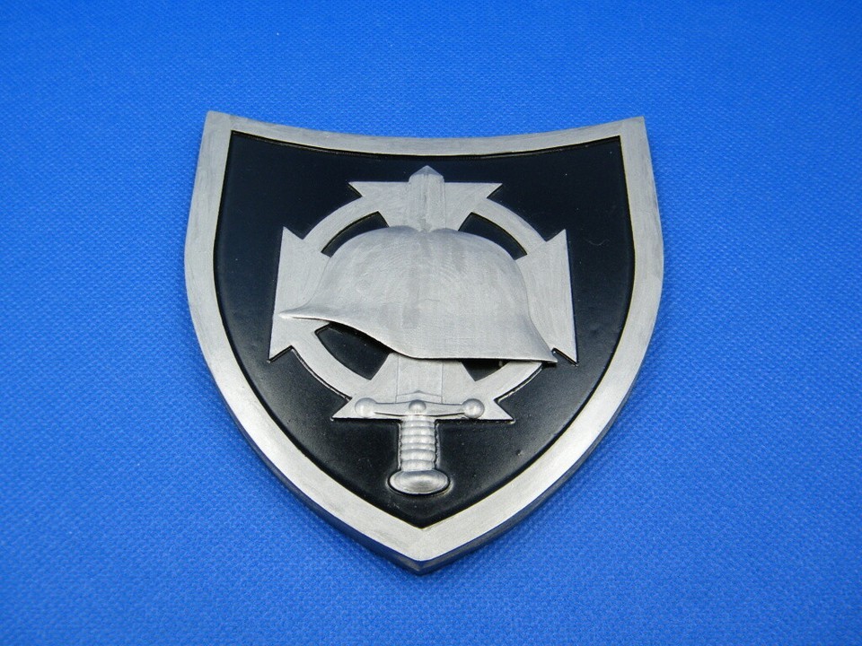German helmet with sword stylish logo, emblem, badge, symbol - replica