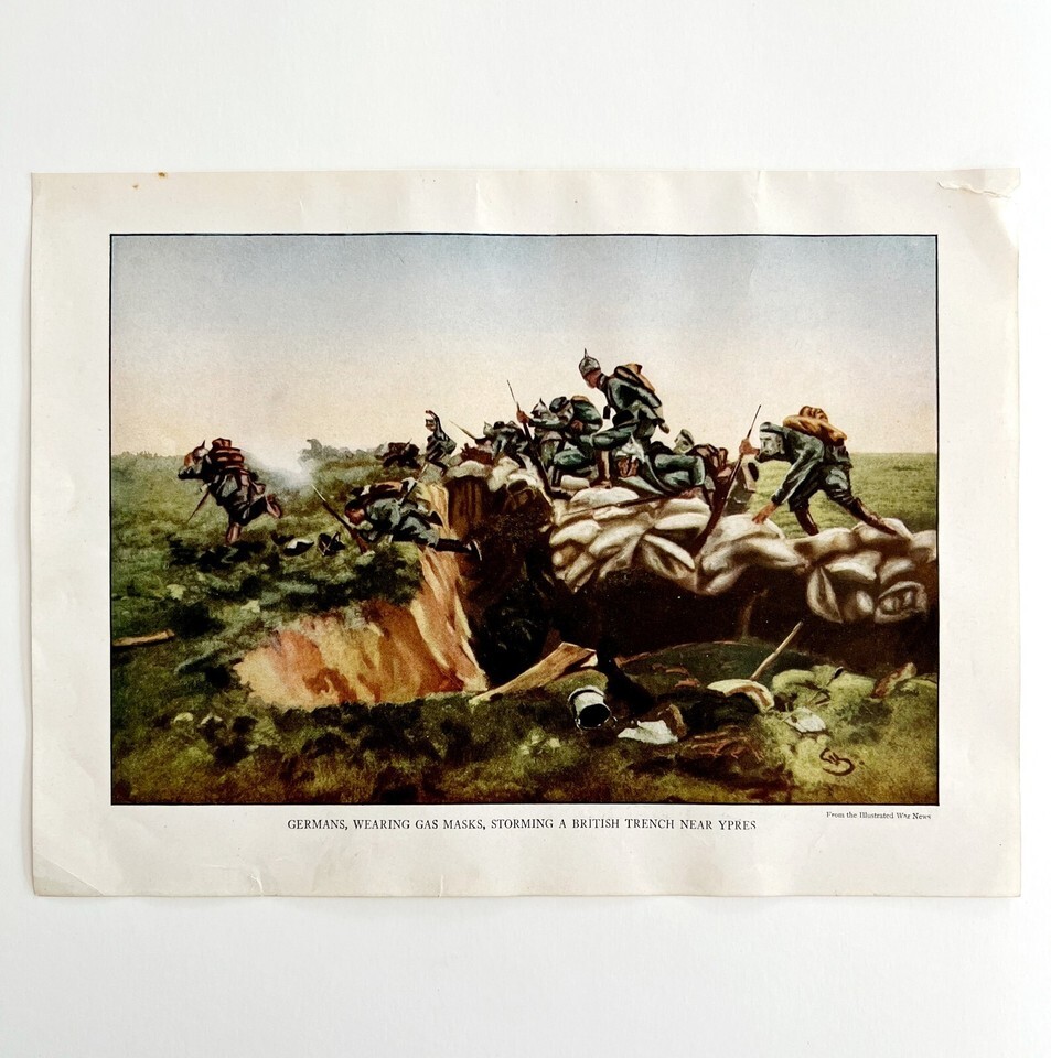 - Germans In Gas Masks WW1 Color Print Storming British Trench Ypres 1917 SmDwC4