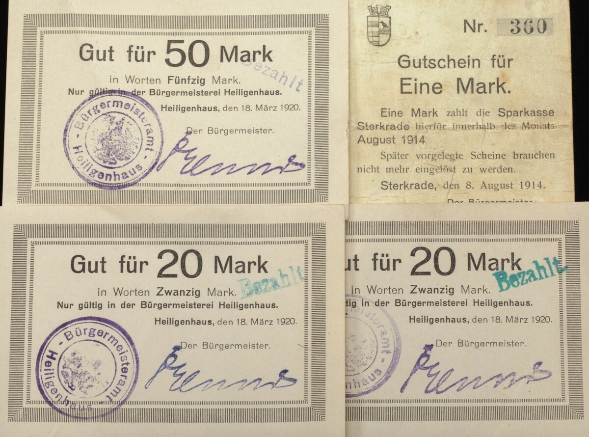 - Germany Notgeld 4pc Lot - (1) 1914 Sterkrade & (3) 1920 Heilingenhaus