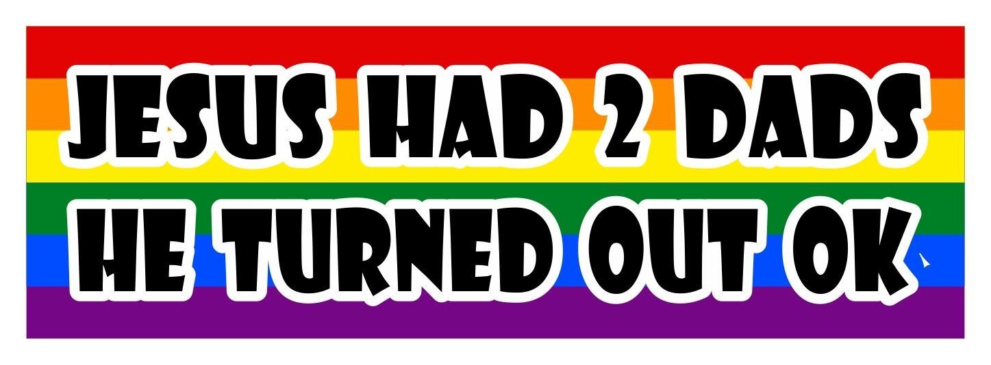 - Gesù Had 2 Dads He Girato Ok Lgbt Gay Lesbo Diversità Decalcomania Adesivo 3 x 9