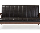 Features: Constructed from rubberwood, MDF wood, and LVL Walnut brown finish Faux leather upholstery with panel stitching Angular wooden frame Versatile Design to Compliment Any Home Decor Solid and Quality Construction Set Includes: One (1) Sofa