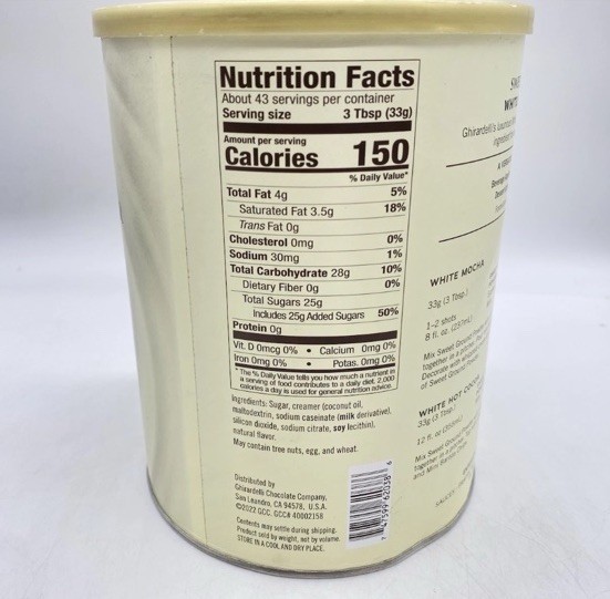- Ghirardelli Chocolate Sweet Ground White Chocolate Flavor Beverage Mix, 50 Ounce