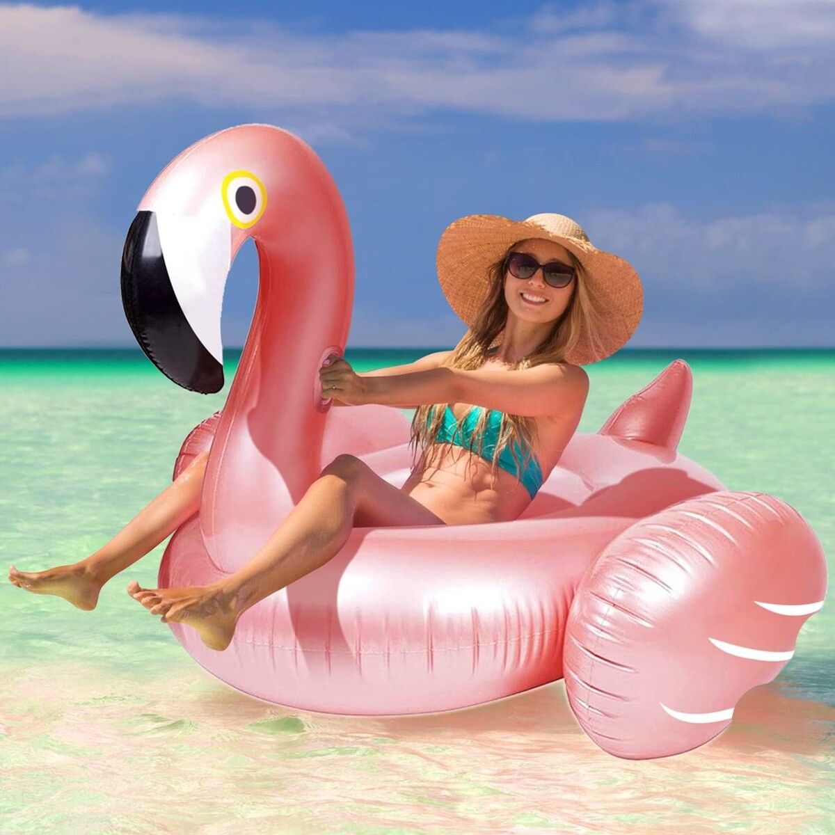 - Giant Inflatable Flamingo Ride On Pool Float, Blow Up Pool Floatie with Fast