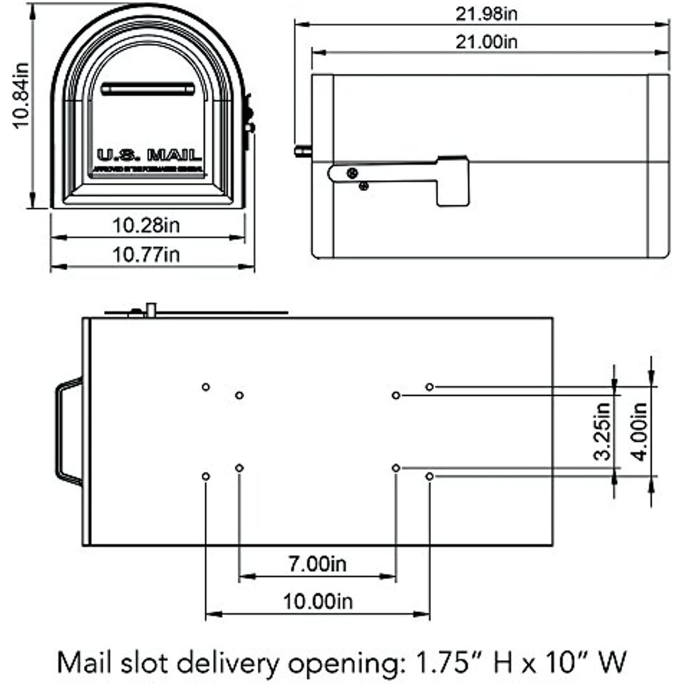 Large, deep capacity mailbox accepts letters and packages through 1.75"H x 10" W slot