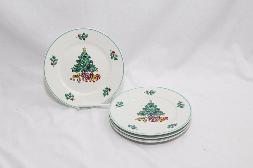 - Gibson Christmas Tree Holly Salad Plates 8" Set of 4 Xmas