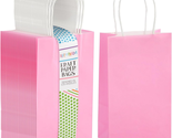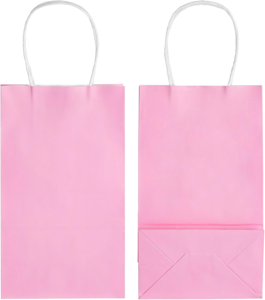 Gift Bags with Handles - 25 Pack, Small Pink Paper, 5.3 X 3.2 X 9 in - Goodie Bags for Kids for Party Favor