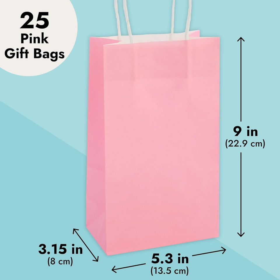 - Gift Bags with Handles - 25 Pack, Small Pink Paper, 5.3 X 3.2 X 9 in - Goodie Ba