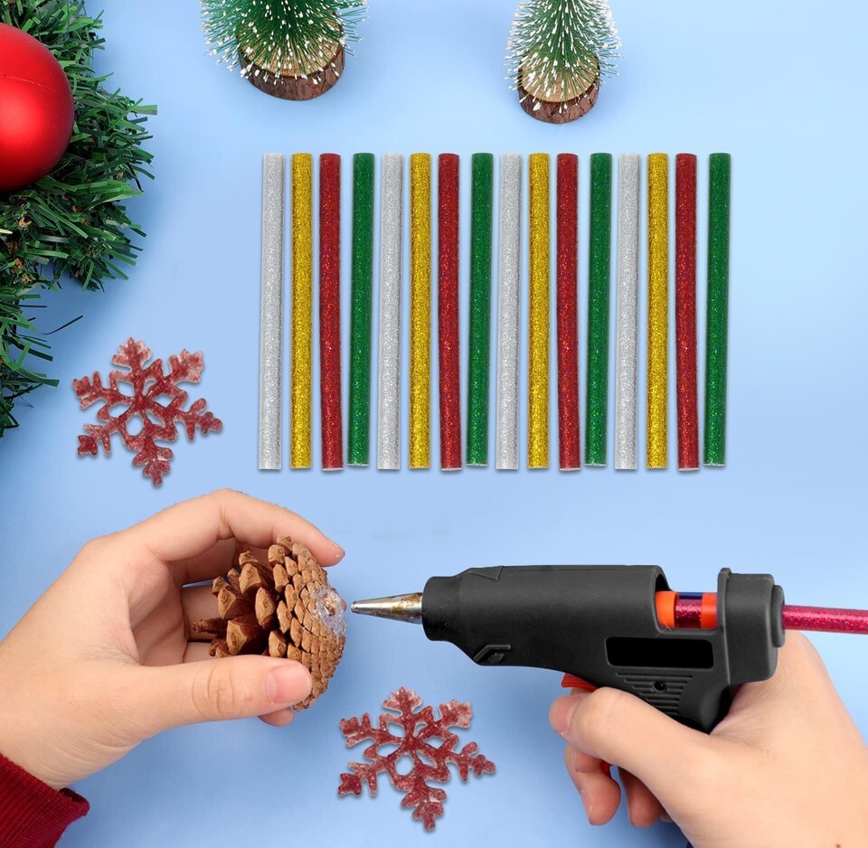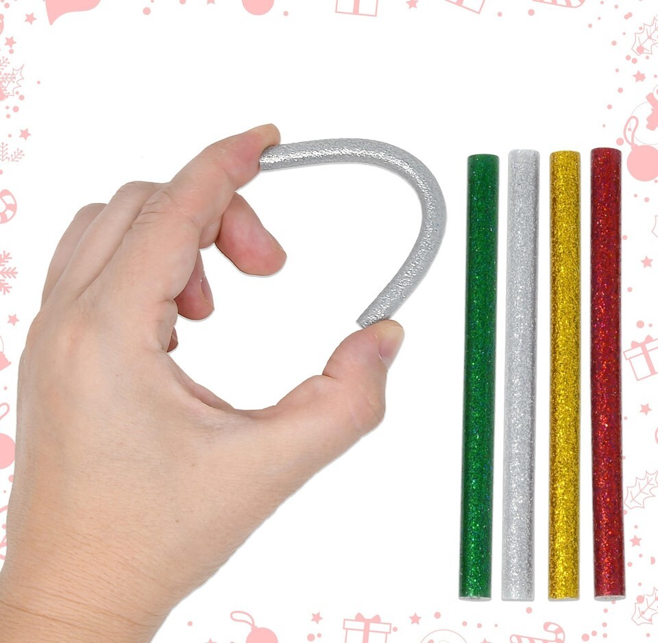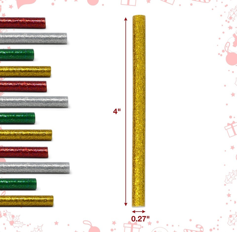 Festive Color Selection: Includes four vibrant colors metallic gold, silver, red, and green perfect for adding a holiday touch to all your craft projects total of 100 mini glue sticks. High-Quality Adhesive: Designed for a strong and durable bond, these glue sticks work seamlessly with most standard hot glue guns. Convenient Size: Each stick measures 0.27" in diameter and 4" in length, fitting perfectly in most hot glue guns for easy handling. Versatile Crafting Use: Ideal for holiday decorations, DIY projects, gift wrapping, and other festive arts and crafts, making your creations stand out. Quick Melt Technology: These glue sticks melt quickly, allowing for efficient crafting without long wait times, so you can focus on your creativity. Perfect for All Skill Levels: Whether you're a crafting novice or a seasoned pro, these colorful glue sticks are easy to use and will elevate your holiday projects.