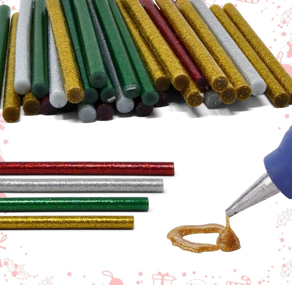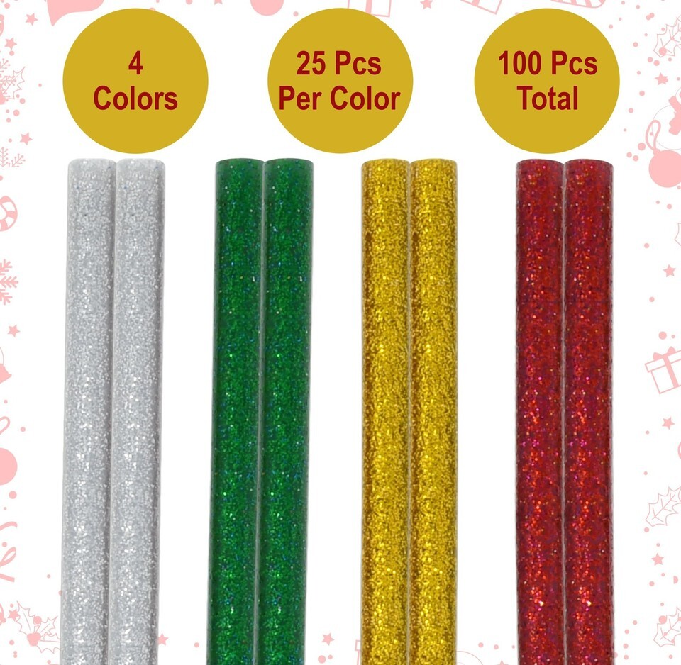 Festive Color Selection: Includes four vibrant colors metallic gold, silver, red, and green perfect for adding a holiday touch to all your craft projects total of 100 mini glue sticks