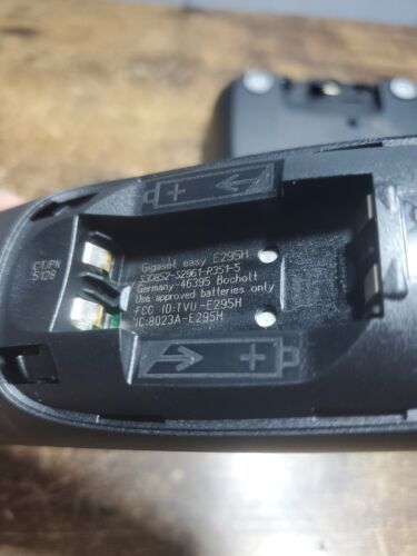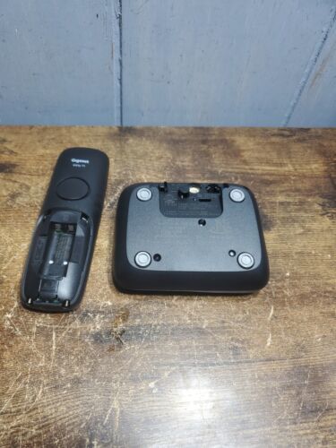 This Gigaset E295A cordless phone and base was made in Germany and is perfect for those in need of large buttons for easy use. The set includes the phone and base, but please note that it does not include the back, battery, or cord. This item is ideal for parts and not working, but can still be a great addition to your collection. The black color adds a sleek look to any home and the country/region of manufacture is Germany. This cordless phone and base set falls under the categories of Consumer Electronics and Home Telephones Accessories, specifically Cordless Telephones Handsets. Own a piece of German engineering today!