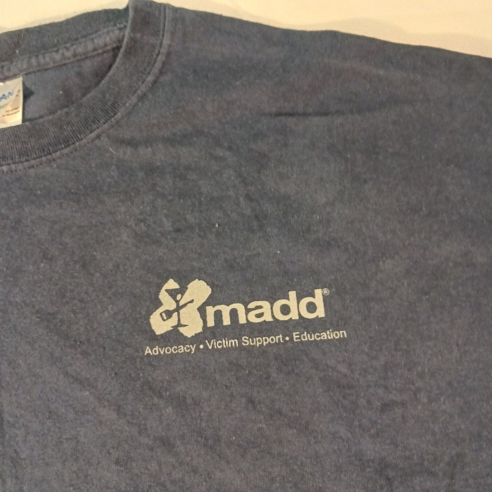 The shirt features the MADD logo on the front and back, making it a great way to show your support for the cause. It was made in Nicaragua and is a great addition to any collection. Whether you're wearing it to a fundraiser or just around town, this Gildan Ultra MADD Law Enforcement T-Shirt is both stylish and meaningful.