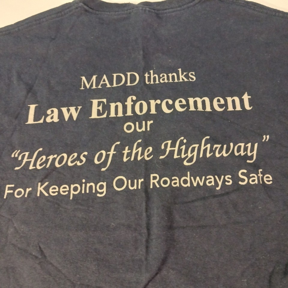 - Gildan Ultra MADD Law Enforcement Men's Blue Cotton T-Shirt Long Sleeve Size 2XL
