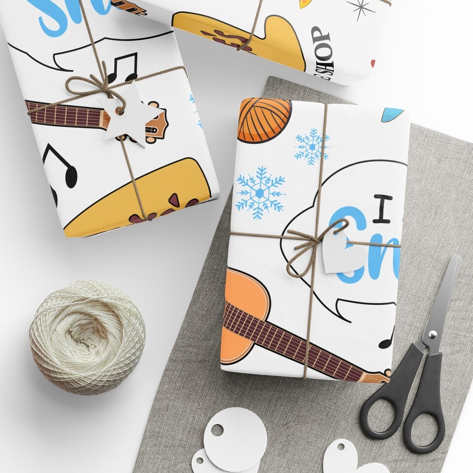 Bright, nostalgic wrapping paper that reads like a tiny scrapbook of cozy town life. Hand-drawn icons ? pumpkins, daisies, coffee signs, a vintage van, stacked books and a scruffy dog ? scatter across a clean white field, letting each small illustration stand out. The prints come on sturdy 90 gsm fine art paper in your choice of glossy or matte, and are offered in three generous lengths so you can wrap anything from small boxes to oversized parcels. Subtle white borders with a small bar and QR code sit at the roll edges. This sheet turns ordinary gift-giving into a moment: unwrap a memory, tuck in a note, and let the recipient smile before they even open the package.