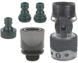 Provides quick and easy connections to faucet, hose, and hose end accessories; Eliminates time consuming on/off threading; Includes 1 female hose end connector with water shut-off valve, 2 male hose end adapters, 1 female faucet adapter, and 1 male faucet adapter.