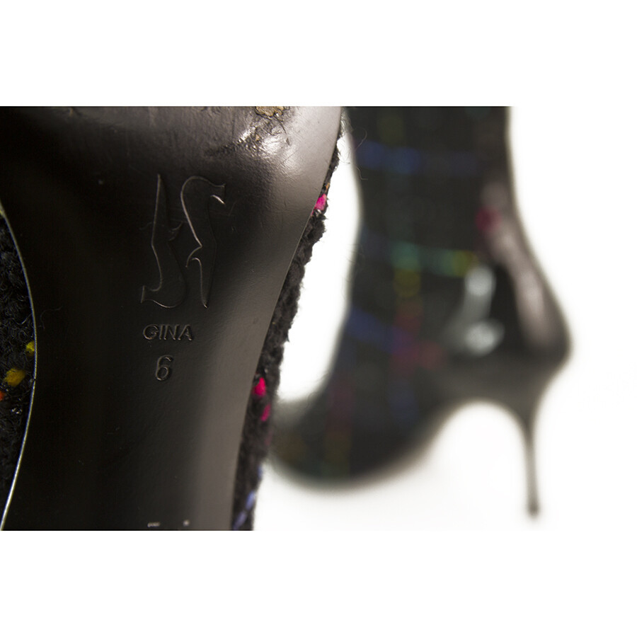 Gina Tweed Fabric Black Patent Leather Boots Slim heels Shoes Back Zipper sz 6